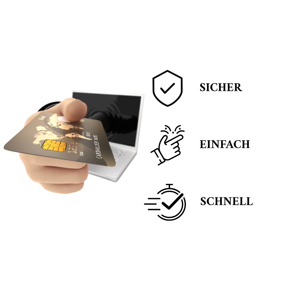 Bei uns können Sie ganz unkompliziert und sicher bezahlen. Wir akzeptieren alle gängigen Bezahlmethoden und Kreditkarten.