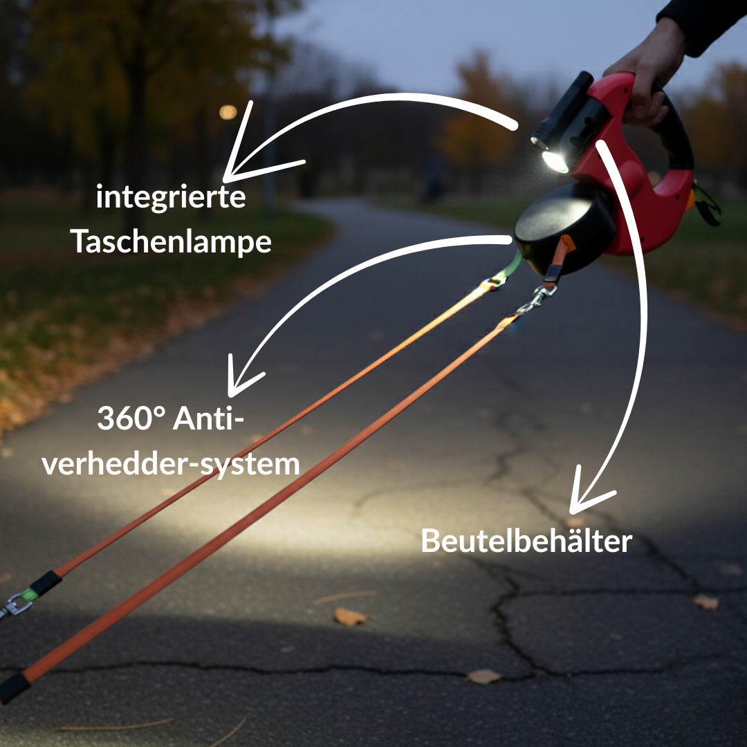 Das clevere Design hält beide Leinen sauber getrennt und sorgt für volle Kontrolle, ganz ohne Chaos.